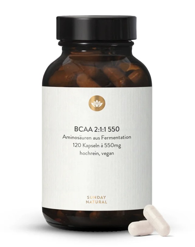 Ontdek de kracht van plantaardige aminozuren met Sunday BCAA 550 2:1:1 Vegan. Deze formule bevat de drie essentiële vertakte aminozuren – leucine, isoleucine en valine – in de optimale 2:1:1-verhouding, geproduceerd via fermentatie zonder dierlijke ingrediënten.